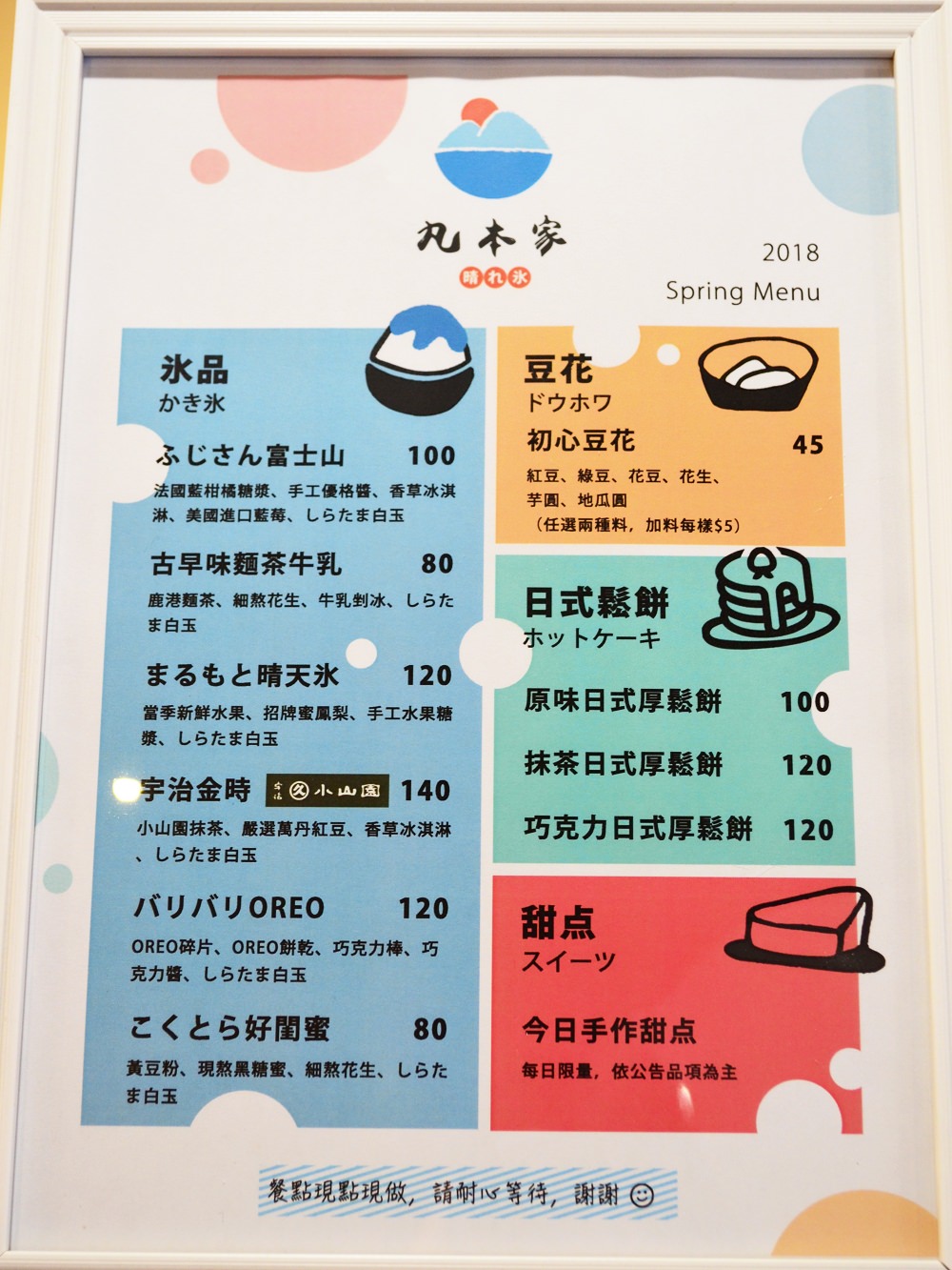 丸本家菜單: 今天我來的時候除了晴天冰,配料都有準備好,但只有提供冰品…希望下次還有機會品嘗其他口味。