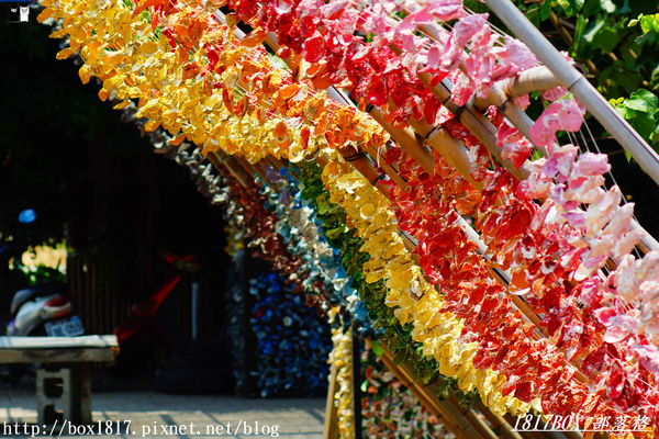 位在王功故事館門口,有一個由千片七彩蚵棚搭建而成的隧道,