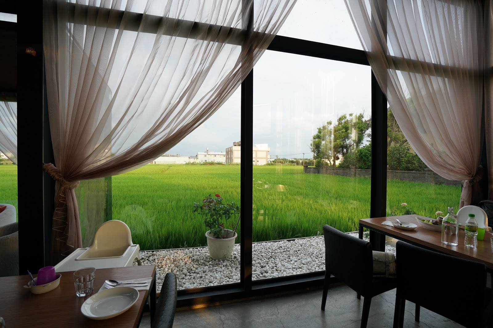 現在稻子正好長得青綠,綿延出去一整片綠油油的稻田超美,靠近田邊的景觀座位最搶手,下次電話訂位一定要指定這裡的位子。