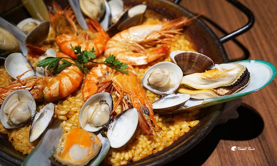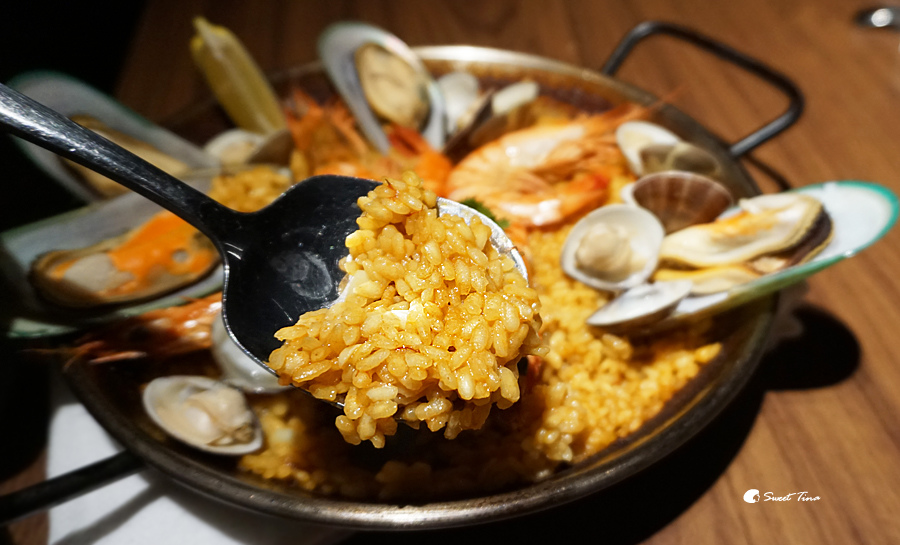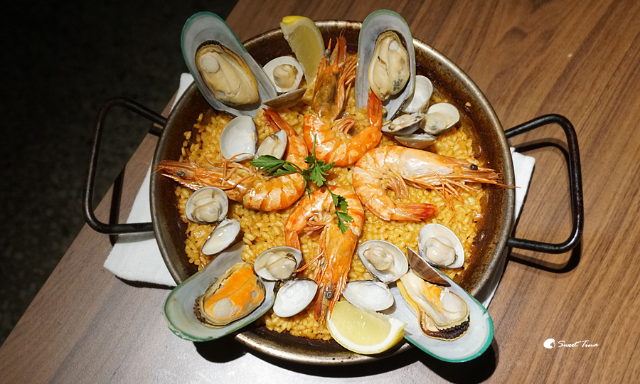 海鮮烤飯(小) - 內含番紅花,如有懷孕的朋友不適宜食用喔。海鮮烤飯搭配了淡菜、鮮蝦、蛤蜊,香氣十足,是西班牙經典料理之一,也是來這兒必點的美味呢。