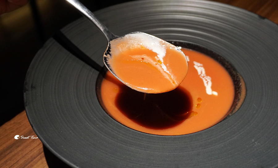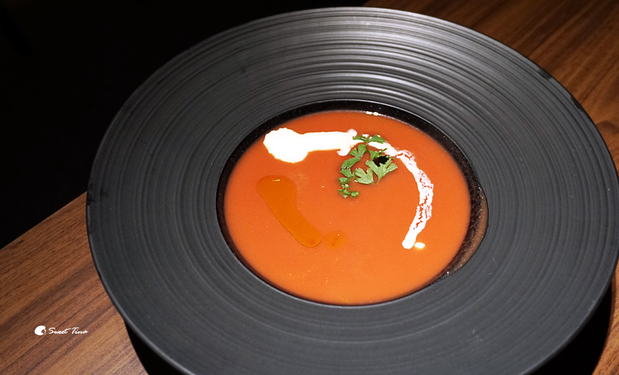 西瓜冷湯 - 選用了果西瓜及胡蘿蔔一同調配而成,口感上我覺得還挺妙的,是略帶鹹味的蔬果汁,相當有層次感,不過第一次品嚐冷湯的我還真的有點兒喝不習慣,喝到後面才慢慢適應呢。
