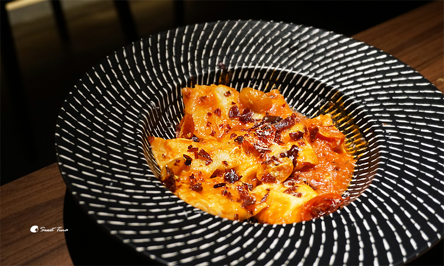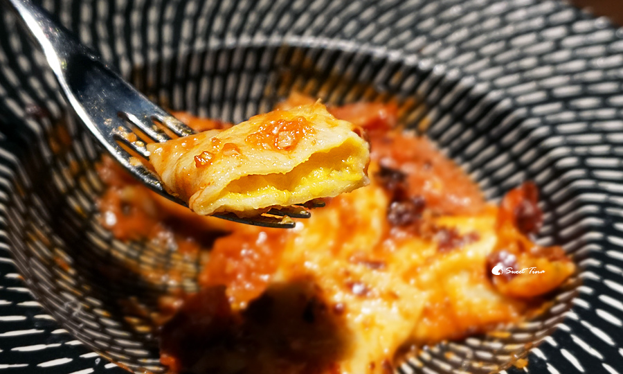 南瓜餃中間是包著南瓜不是肉喔,所以這道吃起來濃郁但清爽不油膩呢。