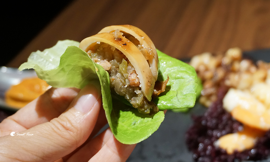 搭配蔬菜後的海鮮口感較為清爽,呈現不同的層次。