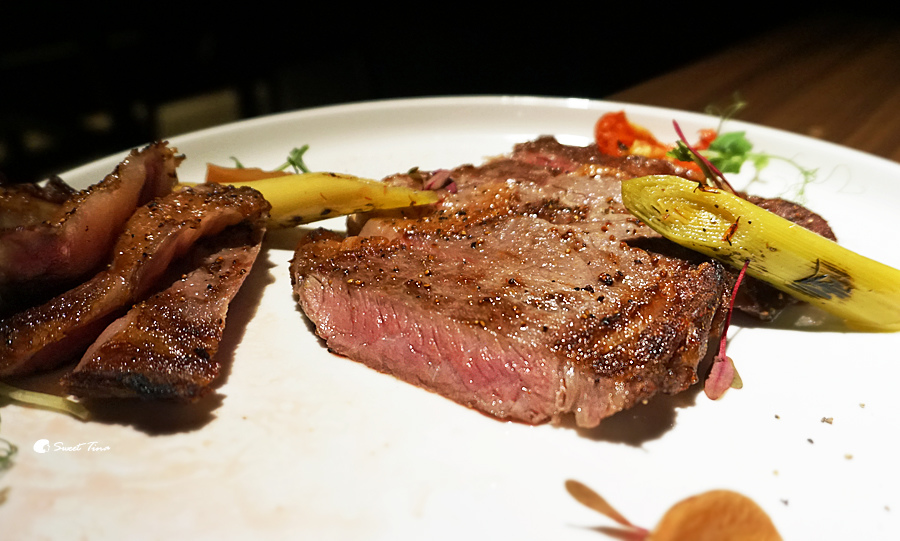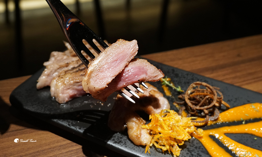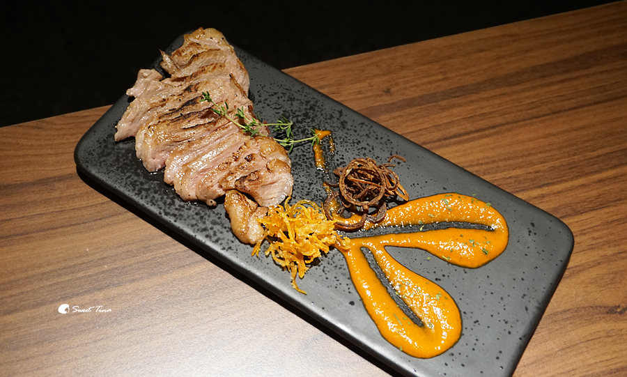 伊比利豬松阪肉 - 美味的伊比利豬肉吃過一次就一直難以忘懷,這次又品嚐到真的超開心的,不過這次在佐料上也多了點變化,搭配了香酥洋蔥、蜜糖橙皮、霹靂醬,味蕾上更多享受呢。