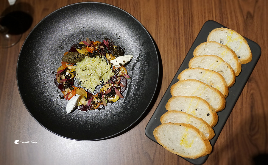 甜菜根沙拉佐橄欖辣根醬、法國麵包 - 可以單獨享用也可以搭配著吃喔。