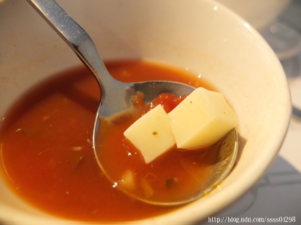 並沒有濃湯勾芡的濃稠感,但喝得出真材實料,輕輕舀起番茄果肉,看了心情超好