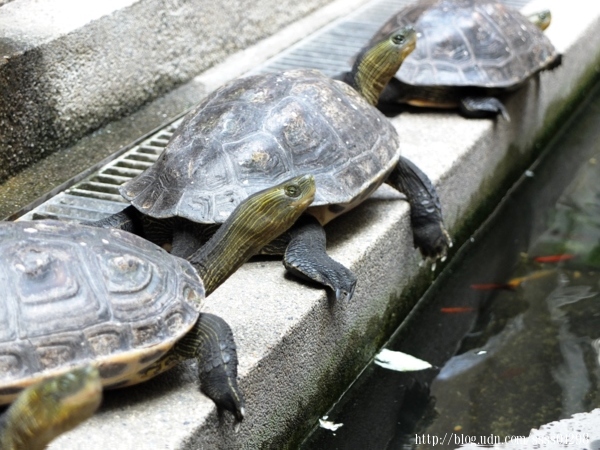 ▲烏龜們整齊排著隊曬日光浴,慵懶的模樣可愛極了,這是我們吃飽飯後的小娛樂