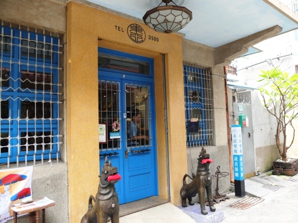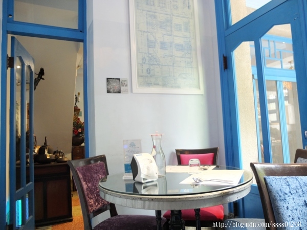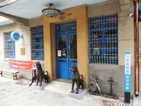 而從門口就能看出重新整理粉刷後的「赤崁璽樓蔬食餐廳」多以藍色為主色調