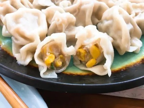 一入口就覺得他的玉米怎麼跟以前吃過的玉米口味水餃不同,原來他們家用的是黃金甜玉米,