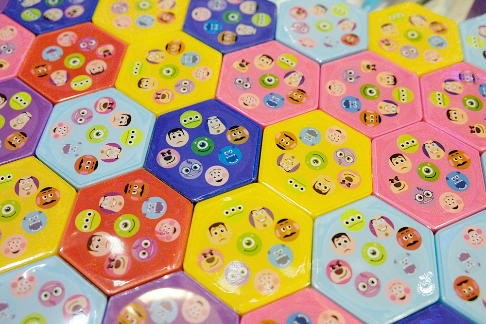 色彩繽紛六角形的是《玩具總動員》x 《怪獸電力公司》的盒玩,就看你抽到哪隻公仔囉!