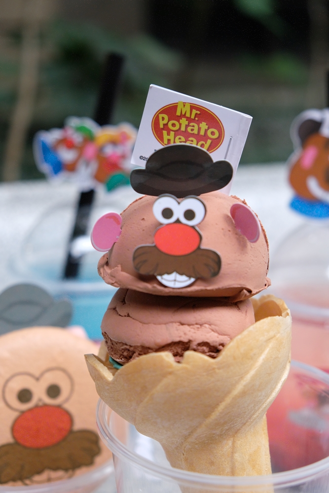 蛋頭先生主題甜點如:馬卡龍夾心冰淇淋、冰淇淋甜筒、蛋頭先生雞蛋糕、夏日沁涼飲品,結合蛋頭家族角色特色,利用裝飾小卡自己DIY,打造屬於自己的Mr.Potato Head!