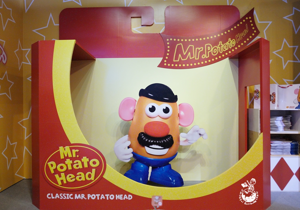 蛋頭先生期間限定店就在華山文創園區中7A館,免費入場!我想應該很多人跟我一樣,對蛋頭先生的深刻印象就是在《玩具總動員》一直掉五官的傢伙,然後蛋頭太太會塞一堆亂七八糟的東西給他,是對非常討喜的夫婦!但我到當天才知道原來蛋頭先生已經高齡66歲了,在1995年加入《玩具總動員》之前,早已廣受民眾喜愛。如今能有自己的蛋頭先生專賣店,可見這位馬鈴薯阿北魅力仍在發燒!