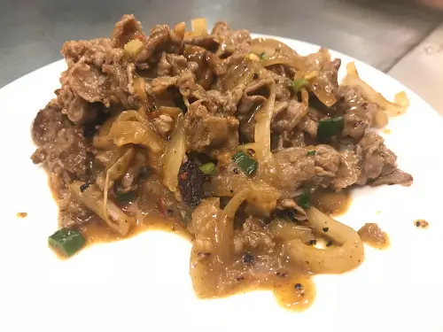 這價格真的算是便宜又漂亮,看師傅給上不算少的牛肉,牛肉吃起來醬香十足,搭配上一點點小辣,