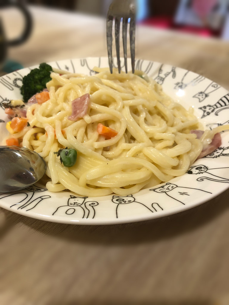 奶油的味道很香,麵條裡面吸附著醬汁,吃的每一口都能清楚感覺到奶油的味道散發在嘴裡,