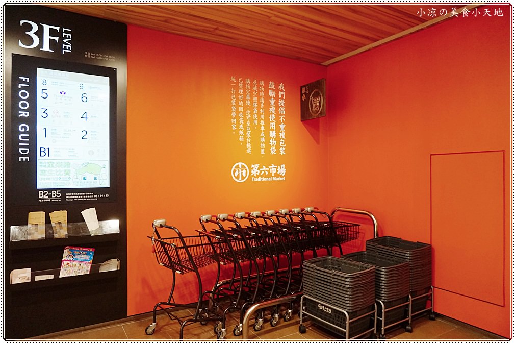 第六市場位於商場三樓,電梯一到打開門旁就有推車可拿取