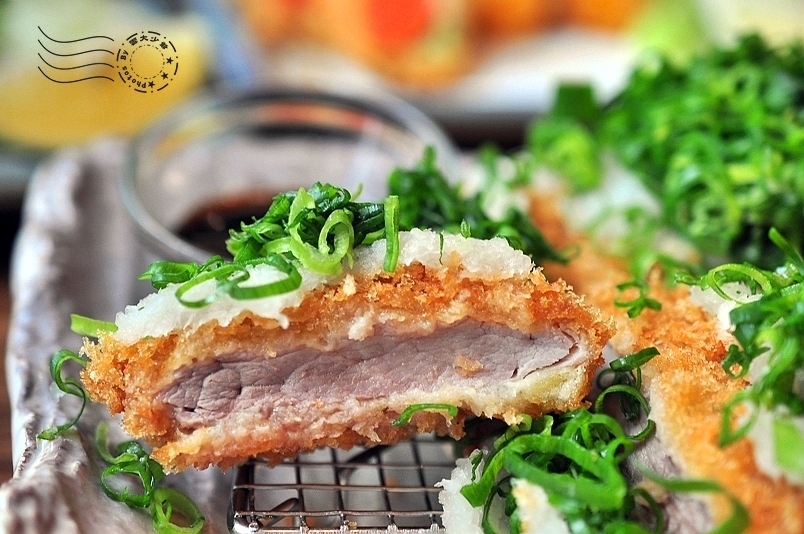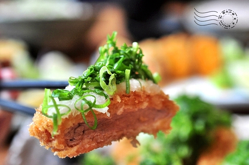 ↓重頭戲來了:蔥花蘿蔔腰內豬排套餐──里肌和腰內肉比,當然是腰內比較嫩。噢!滿滿的蔥花,顏色太漂亮了。