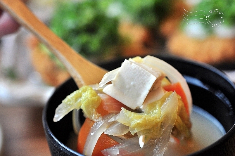 ↓附湯:蔬菜味噌湯。洋蔥、豆腐、胡蘿蔔、高麗菜,相當有誠意。