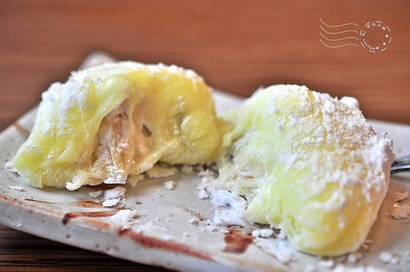 ↓甜點是大福。我想對半切開好拍到甜蜜的內餡,結果沒想到這麼軟,搞得這麼難看。XD