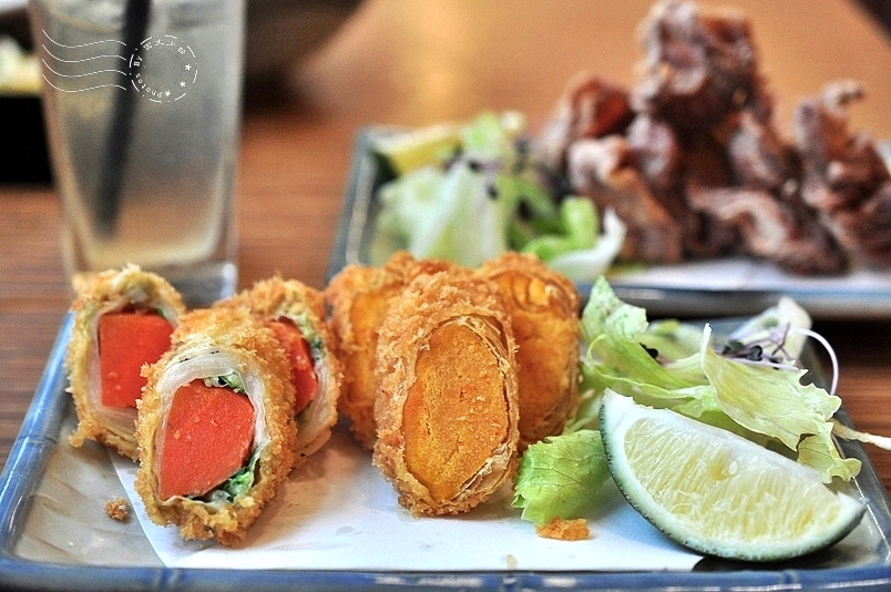 ↓單點炸物「雙時蔬捲」,裹粉炸得酥脆不油膩,無損胡蘿蔔和南瓜的清甜。