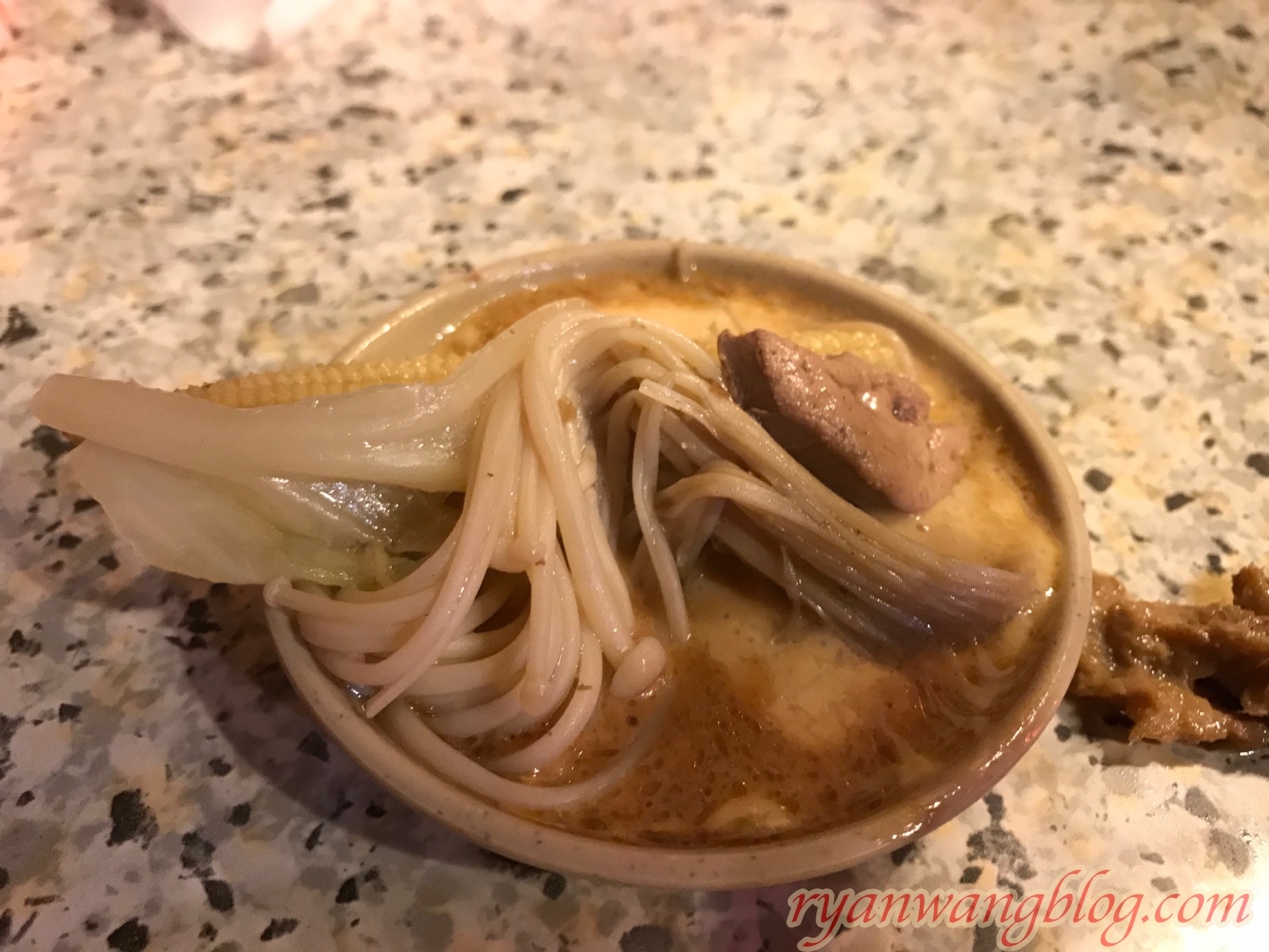 最後則是湯頭的部分,本以為熬煮了這麼多種包含內臟類的食材之後,湯頭肯定容易過於重鹹、油膩,不過實際喝起來卻意外的十分爽口,這裡的湯頭喝起來不像其他薑母鴨鍋底一樣重口味,反而十分清爽,不僅有肉類及內臟類的鮮味、蔬菜類的清甜,再加上我們多點了一瓶米酒,在經過熬煮過後,當酒精揮發後,剩下來的就只有米酒原本的濃郁香氣,不過有開車的朋友們還是得務必留意,千萬別為了吃一鍋薑母鴨而背上酒駕刑責啊!