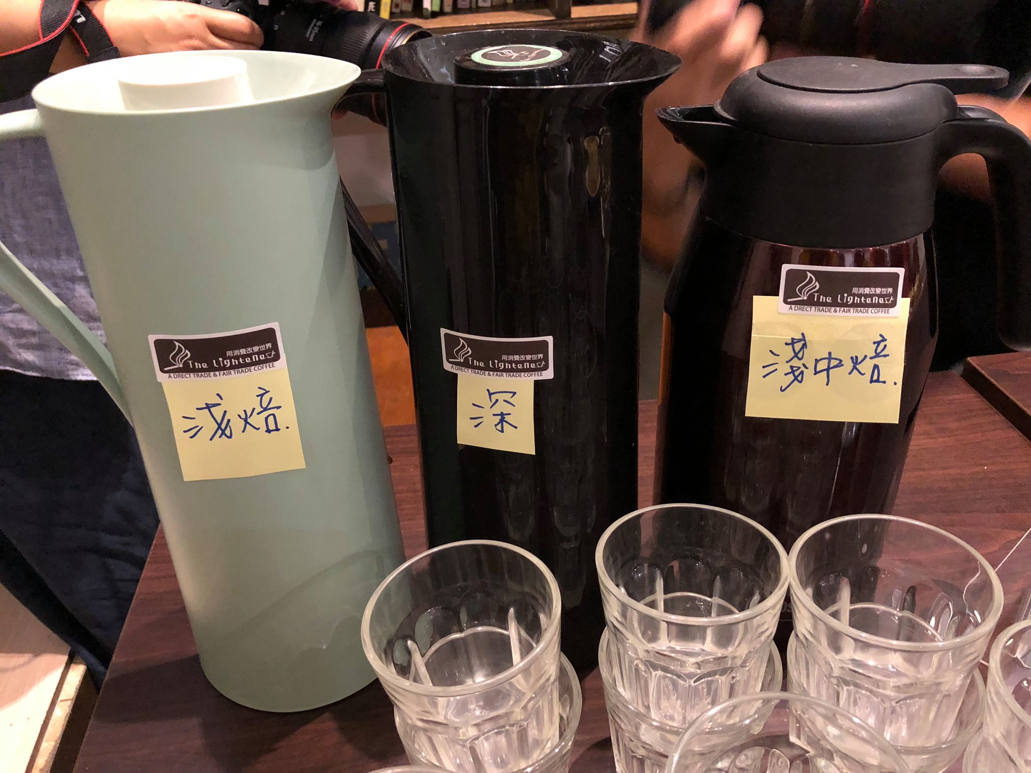 現場提供淺焙、深焙、淺中焙三種咖啡,機器的沖泡,果然沒有手沖的層次與豐富度。品飲這壺淺焙時,當真令我懷疑這與老闆手沖的是同一個豆子嗎? 感受真的差好多~~~ 喝來變得比較渾厚 (相對就是比較濁) 的口感,雖然剛入口的酸度沒有老闆手沖的明顯與對比,但相對的香味層次與餘韻就少了許多...