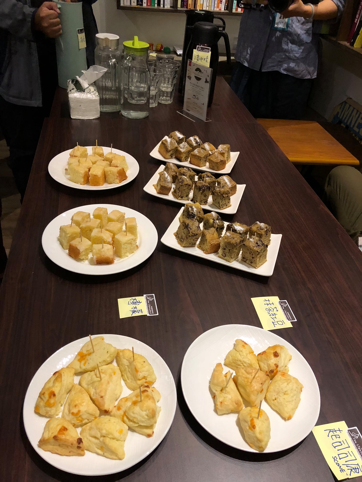 老闆這次提供了手做甜點,跟選擇直接與咖啡小農貿易的心態一致,甜點原料也是用台灣在地食材的老奶奶檸檬磅蛋糕。宏都拉斯主食的紅豆也加入甜點的行列,讓我們知道不同的地區,風土民情不同。我還真無法想像把紅豆當主食呢~ 只能說,台灣真的是寶島! 為了平衡口感,加碼提供了鹹點起司司康! 這三款美味手做甜點,加上咖啡,撫慰了我扁扁的胃,安定了我匆忙的心~