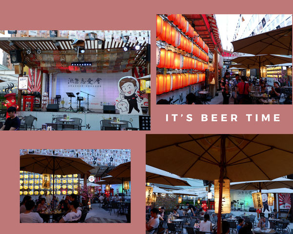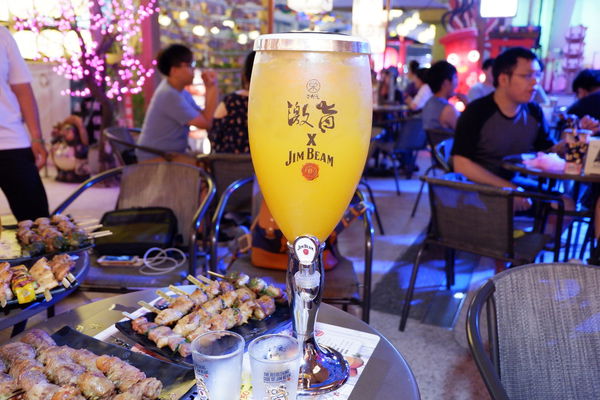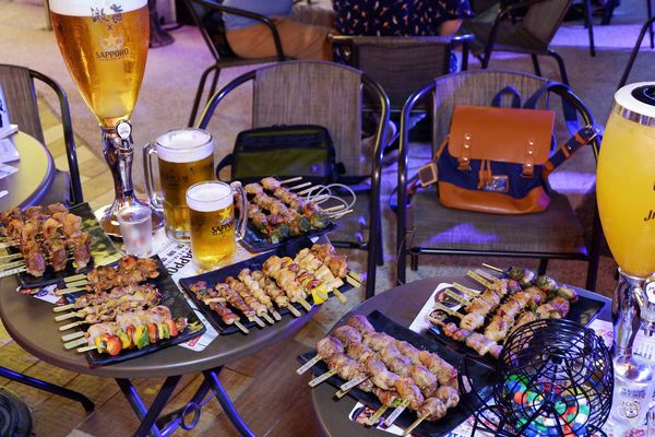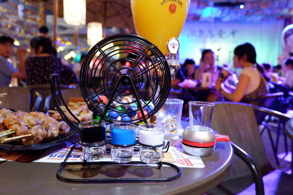 風格走的就像是露天的居酒屋,排排站的紅色燈籠和每一桌都有的小顆方形燈籠,我覺得滿有氣氛的!很喜歡坐在這裡吹吹自然風,小酌一杯邊吃著各樣的串燒