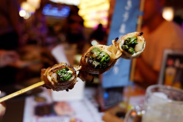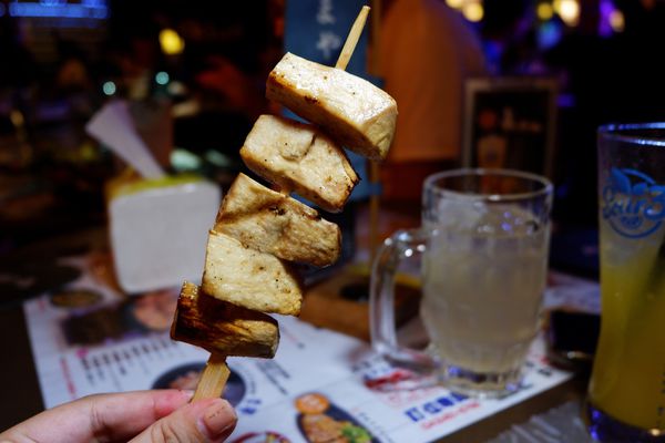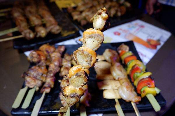 各式創意的串燒絕對是來這裡必點的明星餐點,在豬肉牛肉片中包裹著水果、蔬菜、火鍋料等,激旨燒鳥的串燒是有申請專利的呢!