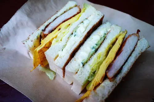 豬排總匯三明治,主角當然是豬排囉,豬肉是選用匈牙利豬排,再搭配薯泥蛋沙拉等組成