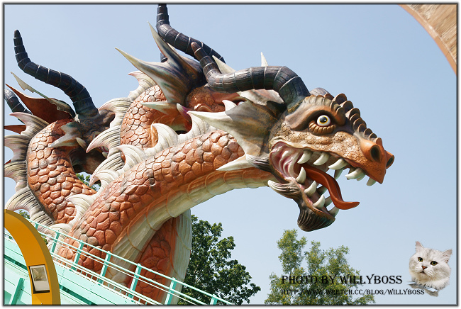 超煞氣的火龍現身,這個遊樂設施叫做飛躍愛情海,好像很浪漫,但根本不是那麼一回事啊XD!