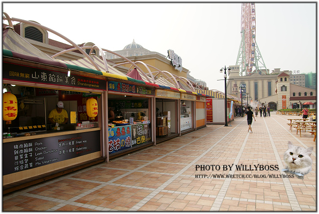 義大遊樂世界的入口在購物中心裡頭,遊樂區分為大衛城、聖托里尼山城、特洛伊城三個區域,這張藍天搭配大衛城的照片熊熊一看真的很有到了國外的感覺XD。