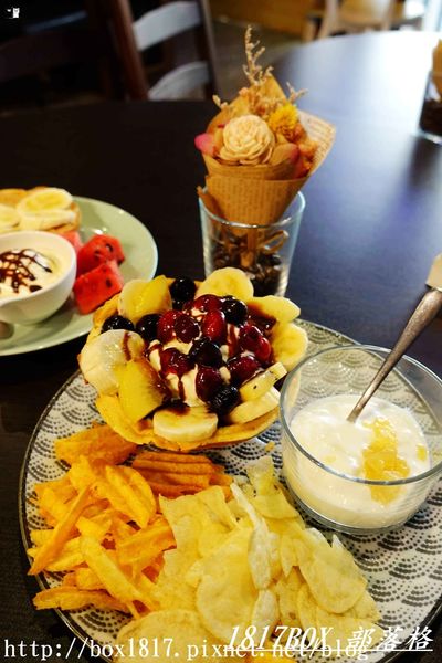 綜合莓果+香草冰淇淋+鮮奶優格+原味鬆餅+薯片