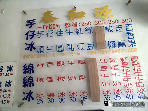 泰和源芋仔冰菜單