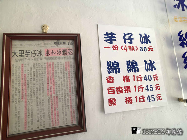 【台中。大里】草湖芋仔冰創始店。泰和源芋頭冰。泰和源芋仔冰。綿綿冰。古早味冰品
