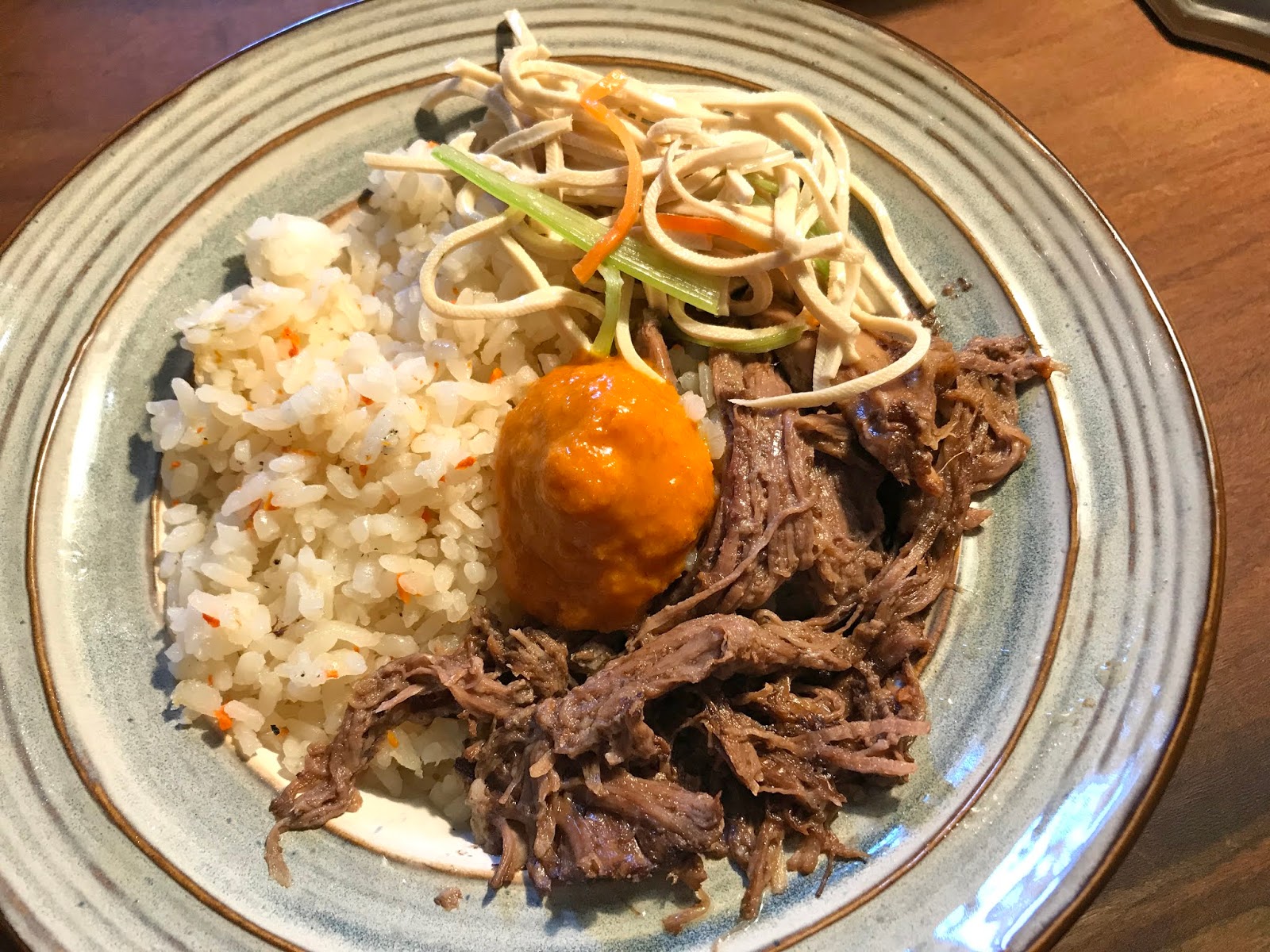 我們這天都不約而同的點了手撕牛肉飯,飯量蠻多的,搭配著味道清爽的手撕牛肉佐著特製酸辣醬,口味很獨特!是很適合夏天的一道清新餐點!