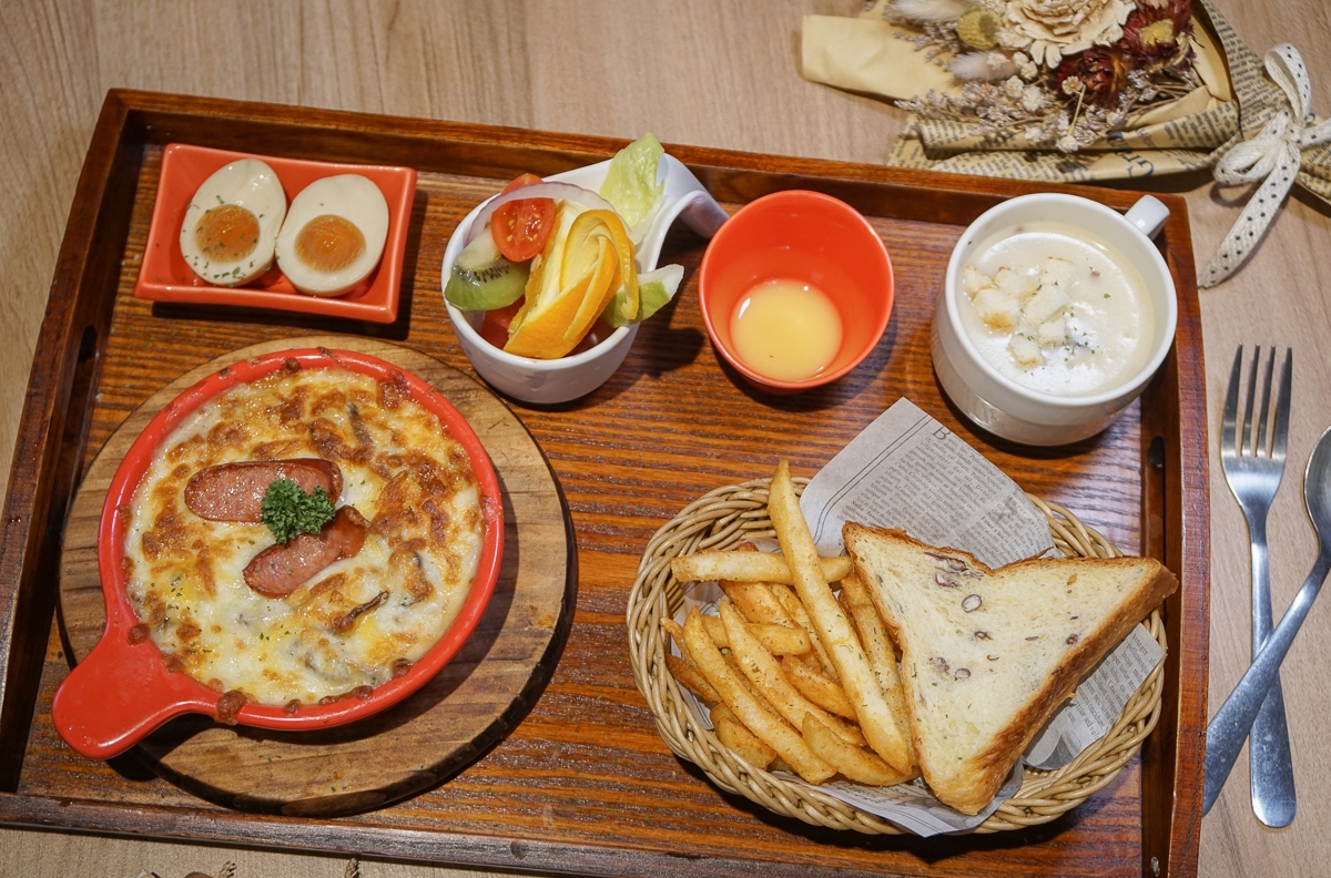 餐點有豐盛早午餐義大利麵燉飯,還有女孩們