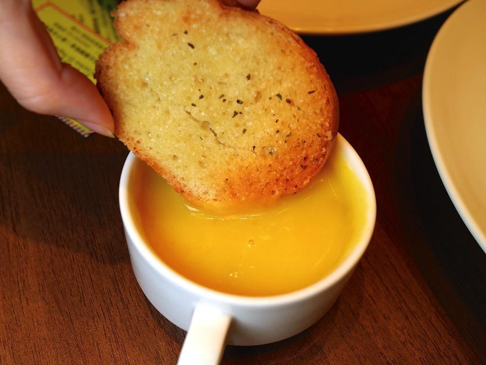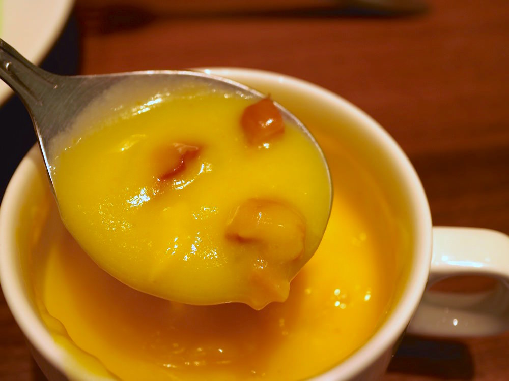 今天的濃湯是南瓜濃湯,喝起來香濃,我很喜歡。用杯子盛裝,小巧可愛,太好喝了,我一口氣就咕嚕咕嚕喝光了 :P
