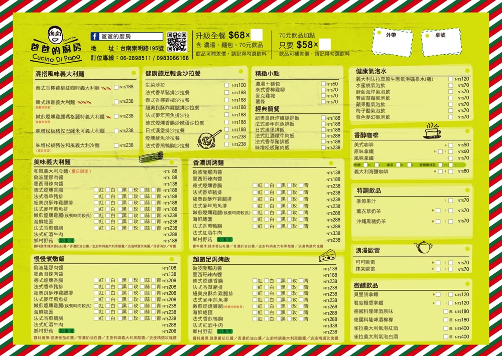 『Cucina Di Papa 爸爸的廚房』-店家菜單