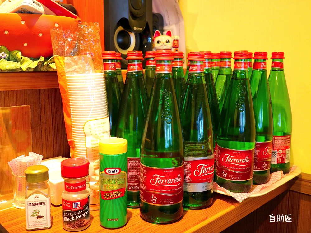 店家的義大利麵,堅持使用 世界第一品牌:Barilla 百味來 義大利麵,氣泡飲則是使用:義大利法拉蕊 Ferrarelle 天然氣泡礦泉水。