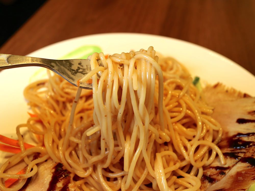 醬汁收得乾,麵條也充分吸收醬汁的鹹辣滋味,吃起來很有味道,卻不膩口!