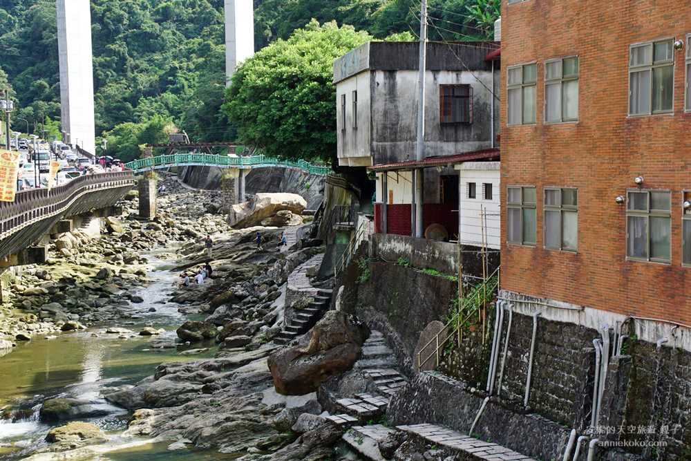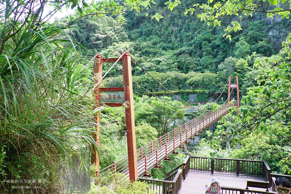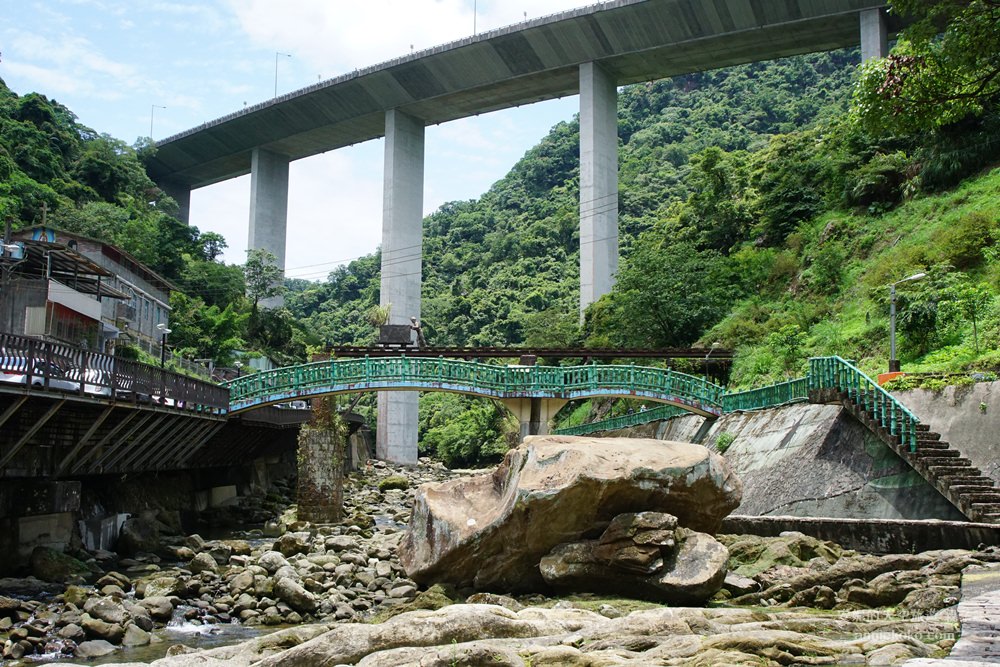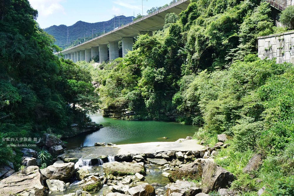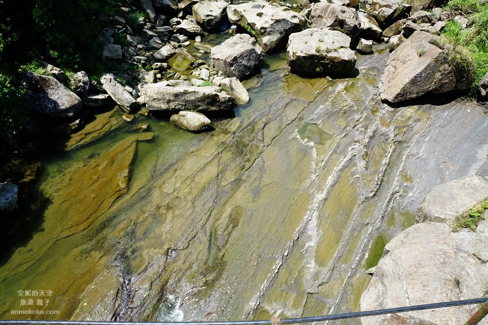 從吊橋俯瞰石碇溪,一整片綠色的潭水,美的像是畫 一般,溪水也跟著溪谷的起伏而有韻律的波動,光看流水潺潺,就覺得整個身心都被療癒了。