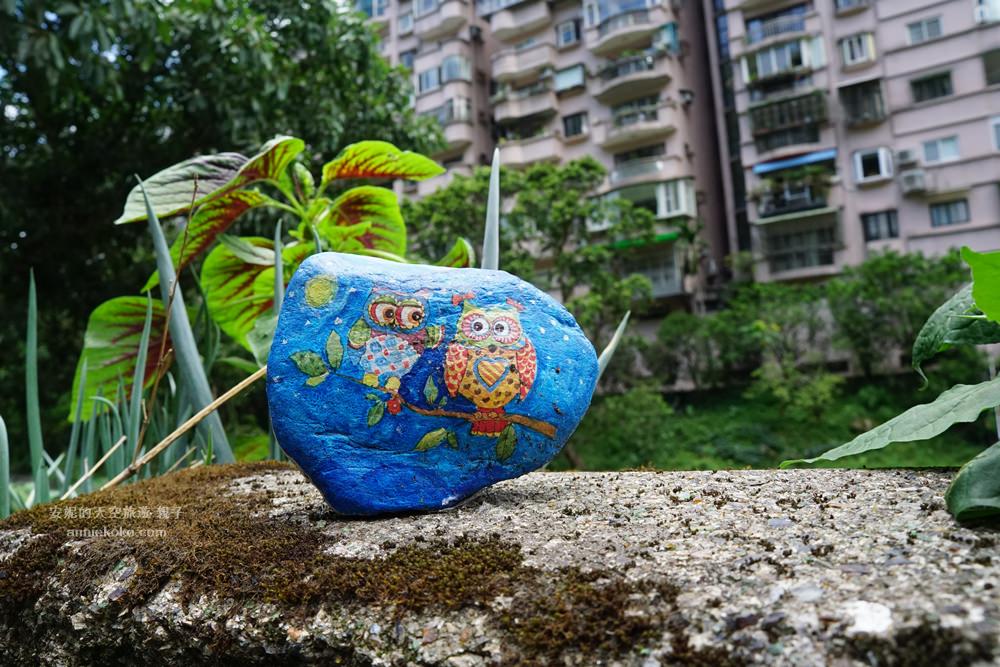 還有居民彩繪石頭放在溪流邊的圍牆上,非常可愛童趣呢。