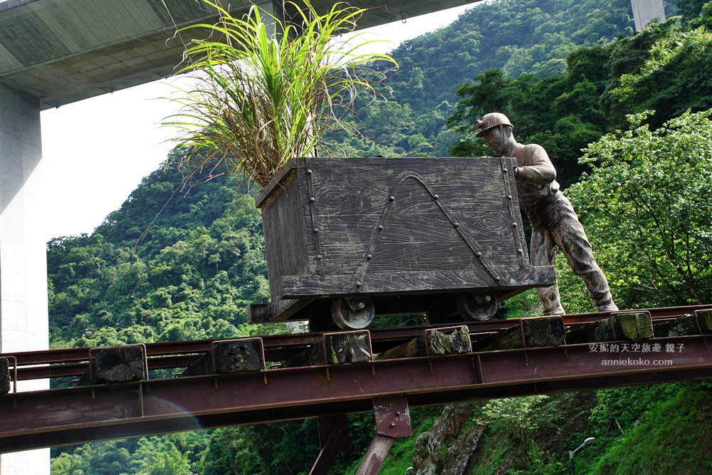 烏塗溪上方還有推著煤礦台車的雕像,栩栩如生,原來石碇早期也是煤礦產業興盛的產地之一。