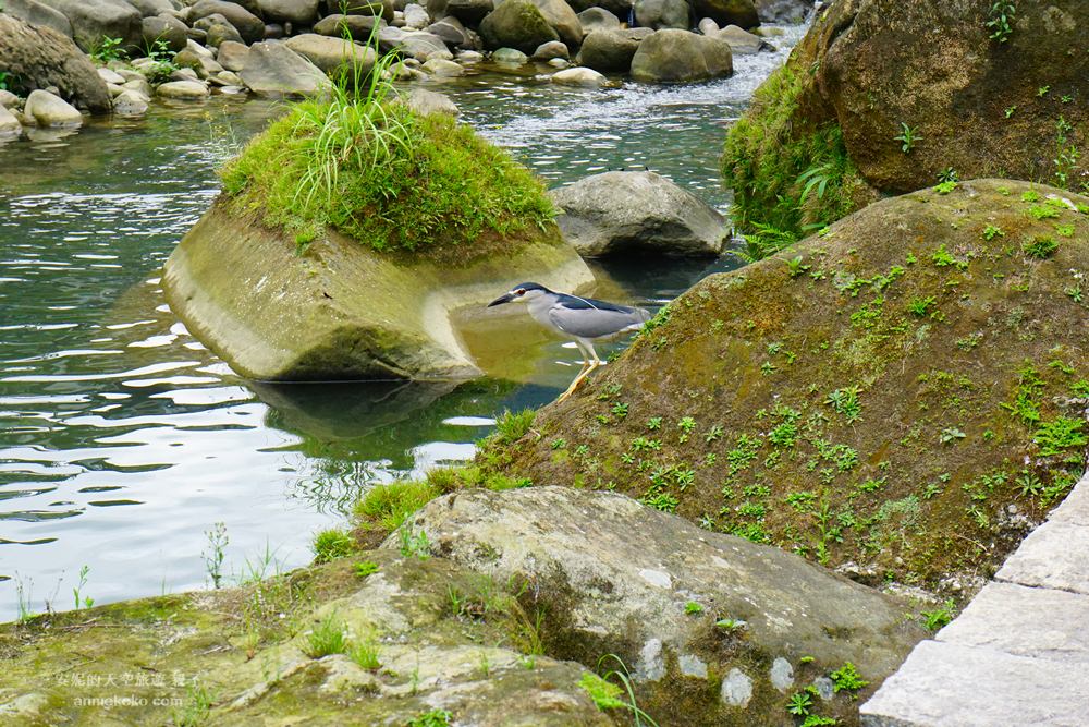 石碇的溪水都相當清澈,所以魚類很多,有許多魚鳥便在岸邊伺機而動,等待魚兒上鉤。
