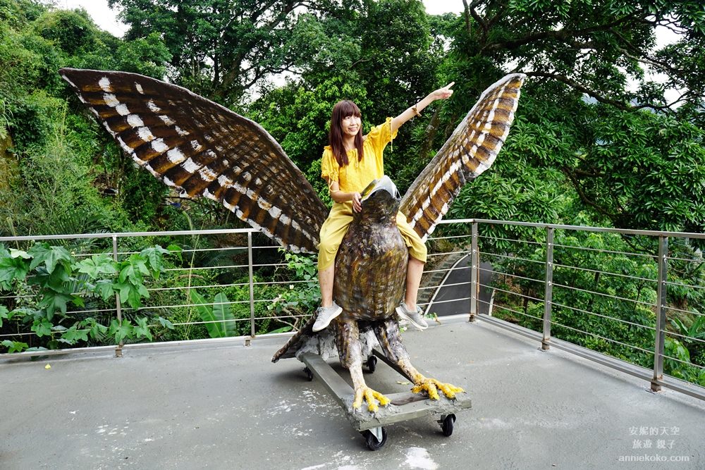 這尊大鵰實在太特別了,老師笑著說前幾天還有鳥飛來這裡,牠們可能以為這尊大鵰跟牠們一樣都是鳥類,只是身形比較巨大,鳥類都這樣覺得了,可見做得有多逼真,特別的是大鵰還設計人可以搭乘的角度,騎乘在大雕上真有種在天空飛翔之感啊。