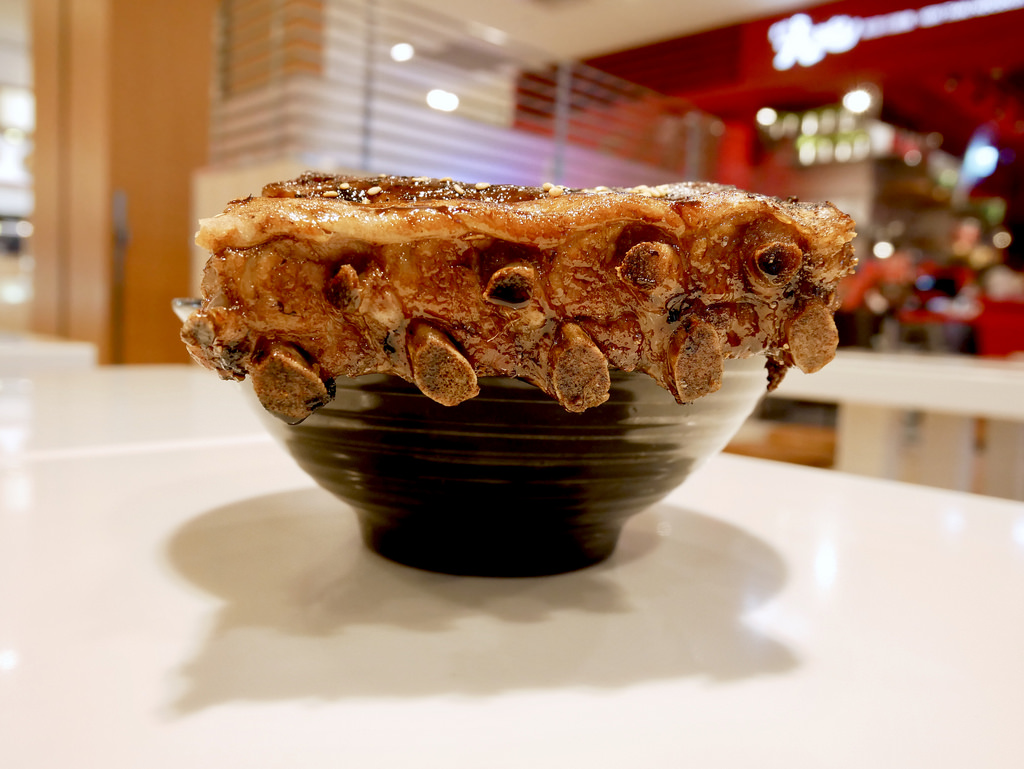 有碳烤的香味,表層是有點焦香的鹹甜烤肉醬,雖然大塊肉質倒不差,先把週邊的肉啃過,在大力將肋排一塊塊撕開,才好啃骨頭,吃這個就是要沒形象的大快朵頤