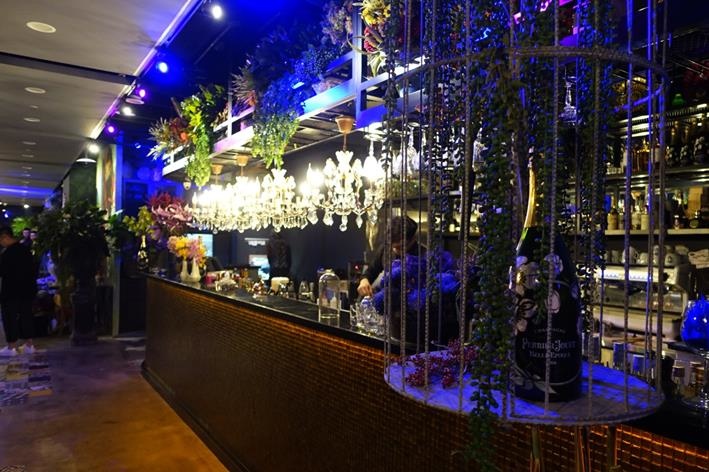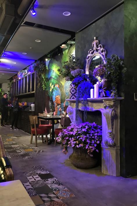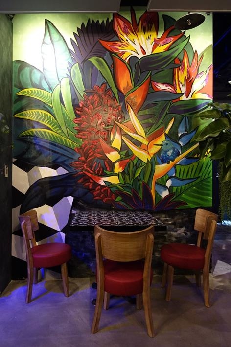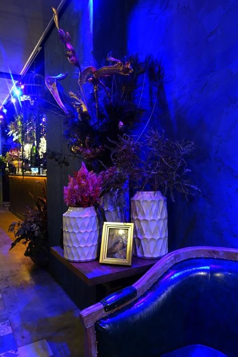 看過很久以前的蝙蝠俠嗎?由烏瑪舒嫚飾演毒藤女那集,這根本就是電影場景重現啊! 一入門見到滿滿的花朵,顏色豔麗,就像是來到熱帶叢林,讓人眼花撩亂.在燈光的襯托之下充滿了迷幻的感覺….