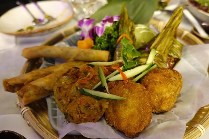 清邁炸春捲, 金錢蝦餅, 香蘭葉雞翅,清邁辣香腸.原本網路大推的是蝦餅,說是會爆漿因此我們還多單點一份.可是我還是比較喜歡外面純蝦漿做的蝦餅,這裡比較像是魚漿,而且還有點腥,加了幾隻小蝦仁.清邁香腸有股很重的香茅味,朋友都說跟在清邁吃到的味道很不相同.香蘭葉雞翅倒是非常鮮嫩多汁.