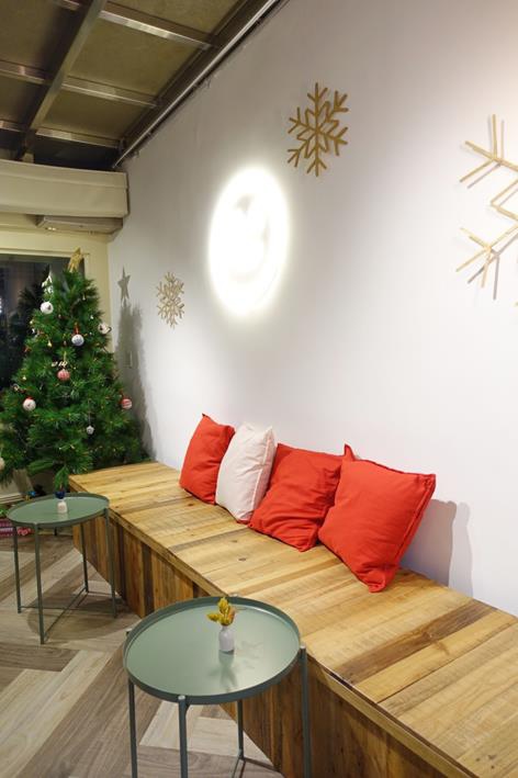 配合冬季,長木桌上也放著藤編造型花環,小小的乾燥花及蠟燭,非常有氣氛!