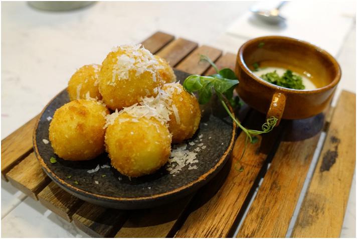 不同於一般市面炸起司大概就是mozzoralla.Element的炸起司比較像是Riccatto奶味很香濃,口感很綿密.